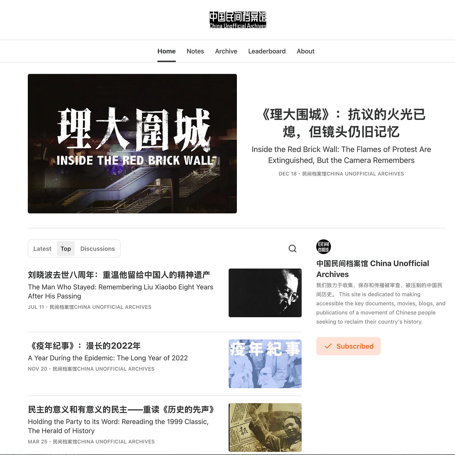 2025年3月,我们在Substack上推出了您现在正在阅读的每周简报。每一期简报旨在推介馆藏的一本书、一部电影、一份期刊或一篇文章。我们的目标,是向读者阐明民间档案馆网站上的材料不仅具有历史意义,对于我们理解当下的中国也必不可缺。